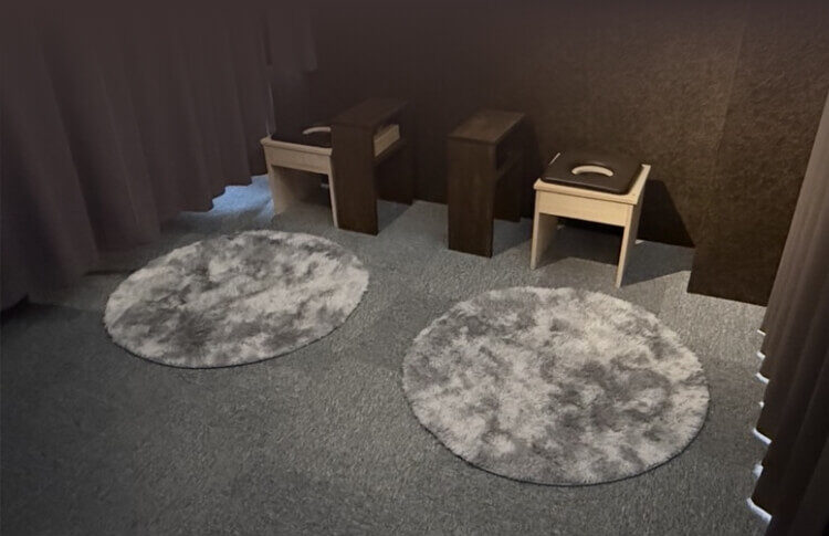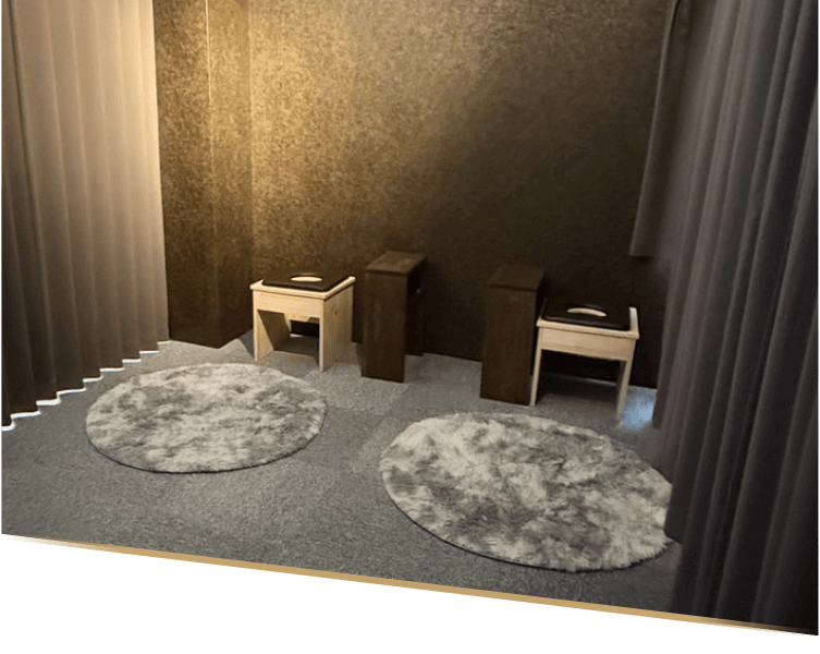 よもぎ蒸し3台・ハーブ蒸し1台・施術ベッド1台を備え、最大4名まで同時利用可能。